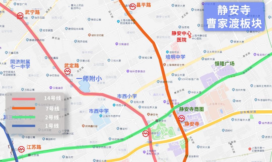 曹家渡独特地域优势,静安、普陀、长宁三区交汇处,能吸纳三个区域的消费人群,商业聚集能力强大。另外,曹家渡距离上海顶级消费中心梅恒泰地区仅1.2公里,是得天独厚的商业副中心地带,世界个性化品牌更易进驻。