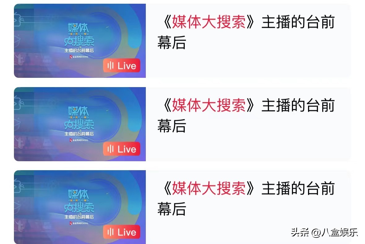 《媒体大搜索》开创了新的与观众沟通的方式,他们在新媒体端开通了主播的另一个视角的直播,观众能看到主播在电视画面外的状态。