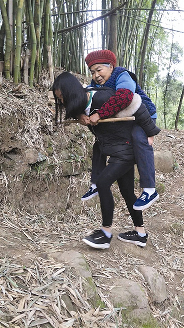 “她是在替父尽孝,是个很有孝心的孩子。”思德乡乡长高小兵告诉记者,去年,考虑到小燕背奶奶去就医的实际情况,乡上在对辖区的村道实施硬化工程时,最先就是从小燕家屋后的泥土路开始的。这样,小燕的奶奶外出就医时,车子可以开到屋后的公路上接她,小燕也可以少背奶奶一段路。