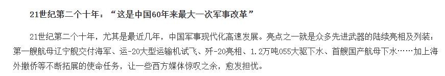 总的来说,中国近几年的军事科技大爆发,已经将国民的自信心提升到了前所未有的地步,至于外界怎么说已经无关紧要了。但美国媒体惯用的“掩耳盗铃”式自我麻痹,只会更加暴露他们面对中国崛起的不自信和焦虑。