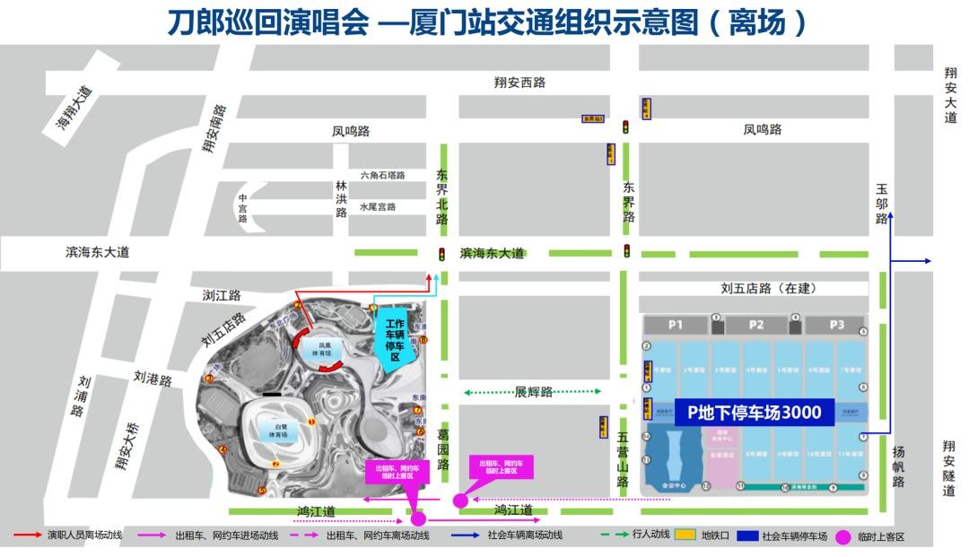 周末自驾到翔安区荻花洲游玩的市民游客较多,请将车辆停放至厦门国际博览中心停车场,严禁在鸿江道上随意停车,避免增加演唱会周边道路交通压力。