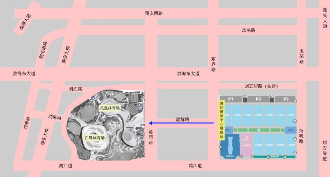观众可以搭乘地铁3号线至“国际博览中心”站,沿展辉路步行至凤凰体育馆。