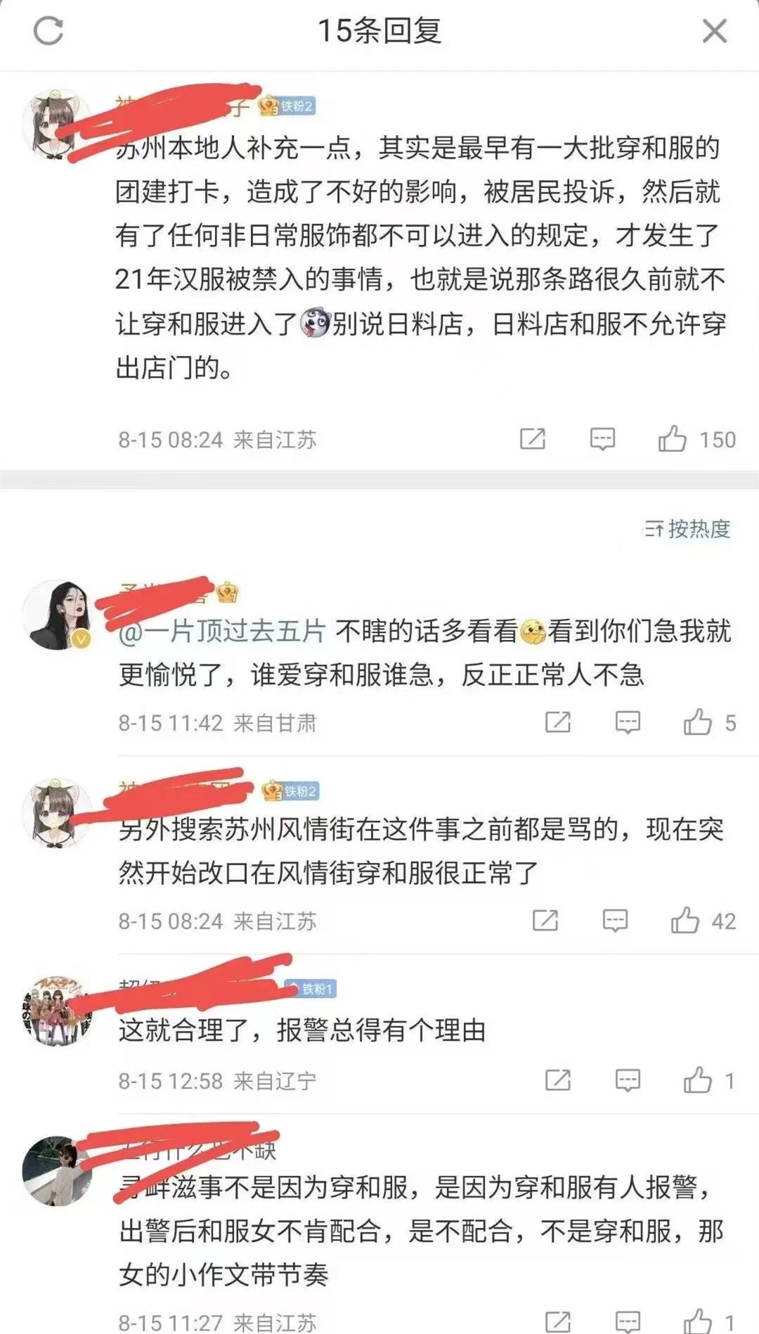 对此阿越不禁想问,既然你想要发声,为什么不选在事发当日或者次日,偏偏要选在日本投降日的前一天晚上?一个本来在网上毫无波澜的事件,为何会在日本投降日当天掀起如此滔天巨浪?诚如“苏州本地网友为此事发声的截图”下网友的留言所言:“苏州风情街在这件事之前都是骂的,现在突然开始改口在风情街穿和服很正常了”?