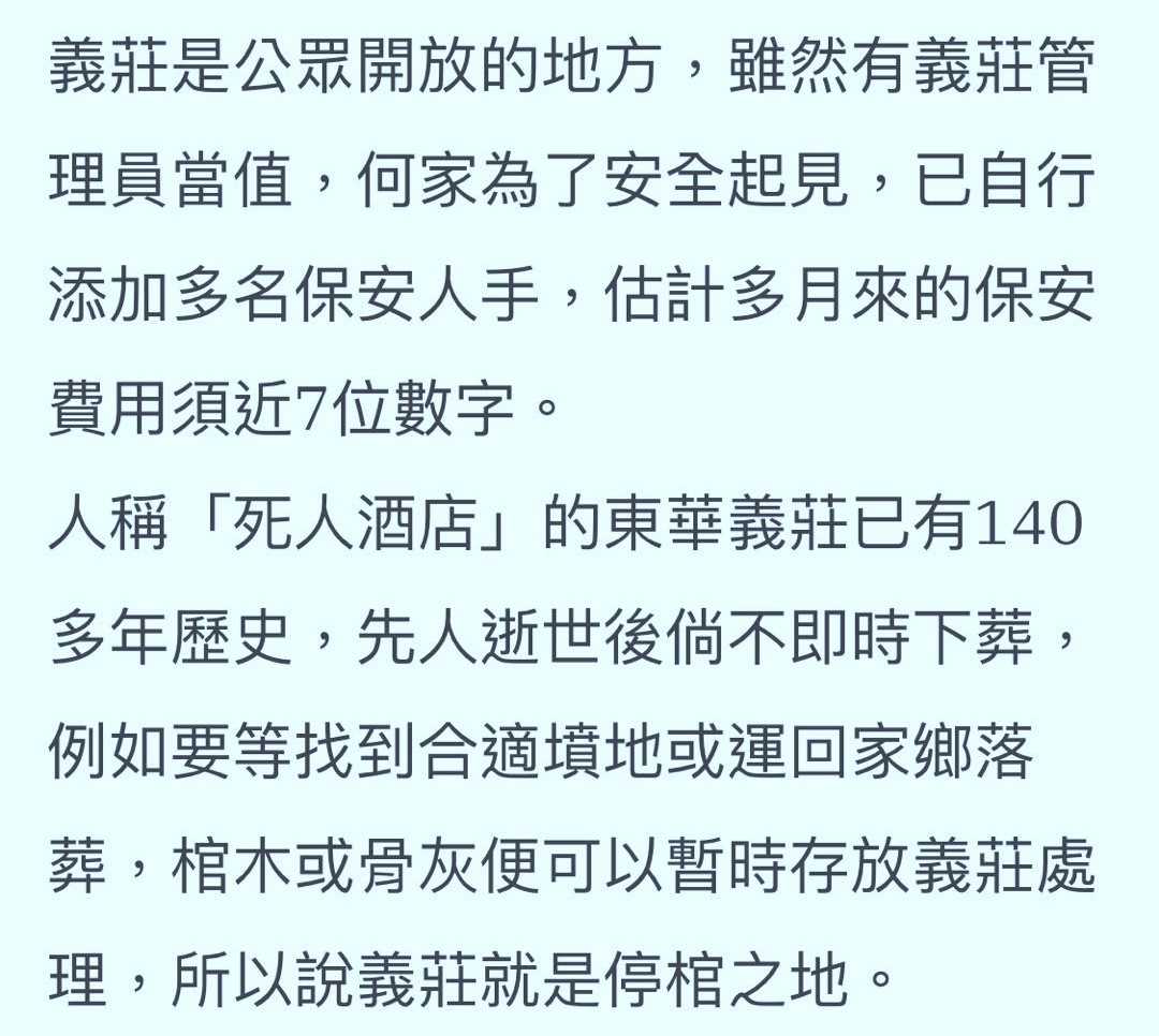 何家完全可以找到一个更好的地方安置赌王遗体,却最终选择“义庄”,还为此出钱聘请多名保安。