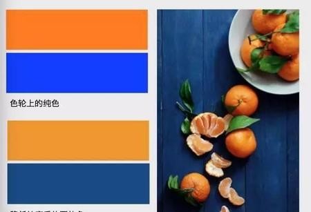 色环上相对的两种颜色,被称为互补色。放在一起,会形成对比效果。比如蓝色和橙色、红色和绿色、黄色和紫色等。