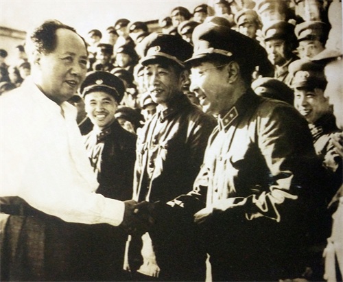 毛泽东主席接见武汉军区党代表大会全体代表(右二为孔庆德)