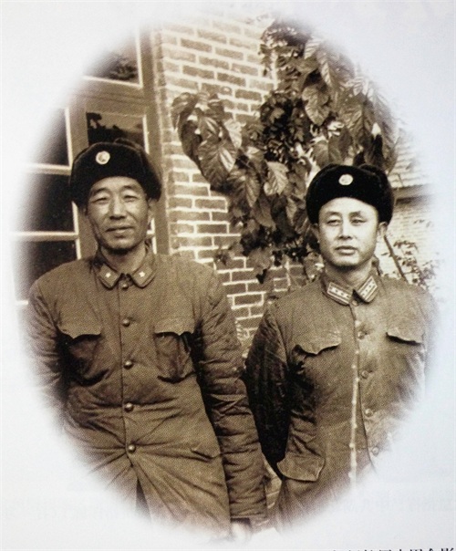 孔庆德1958年10月到陆军某师下连当兵时与师长周忠甲合影