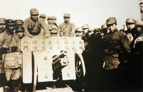 1938年1月孔庆德指挥夜袭战缴获日军山炮一门,庆功会上徐向前副师长亲笔题词