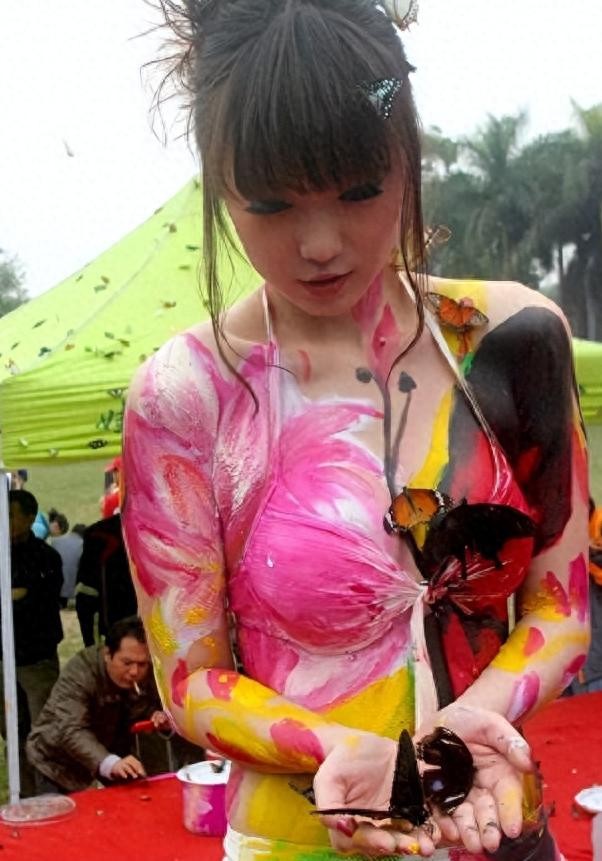 后来张筱雨在广西一个动物园进行特别的人体彩绘表演,扮演“蝴蝶仙子”,为游客带来震撼的视觉体验。
