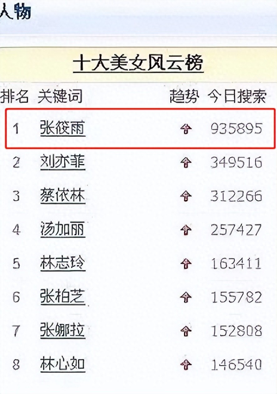 甚至超过当红女星刘亦菲的搜索热度,要知道当时的刘亦菲可是手握多部爆剧,不得不说当时的张筱雨热度真的高。