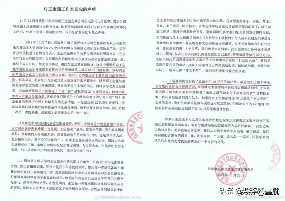 事情的起因很简单:王宝强执导并主演的电影《八角笼中》票房大卖,而恩波格斗俱乐部竟开始反咬一口,指责王宝强没有按照所谓的“承诺”支付票房分成。