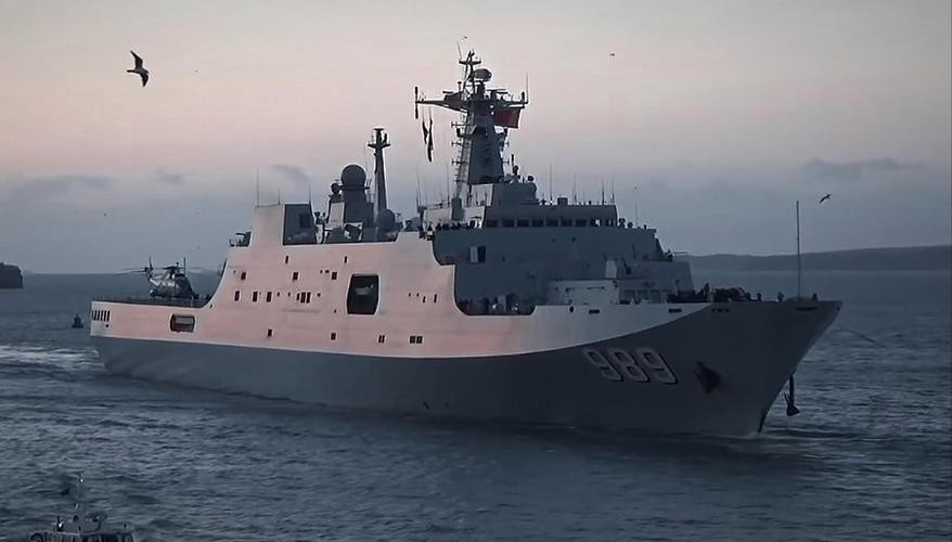071型船坞登陆舰满载排水量约 2.9万吨,具有较强的两栖作战能力和运输能力,不但可以运输坦克之类的陆地作战军种,更具有可供大型直升机起飞的甲板以及相关系统,为中国海军执行两栖作战任务提供有力保障。