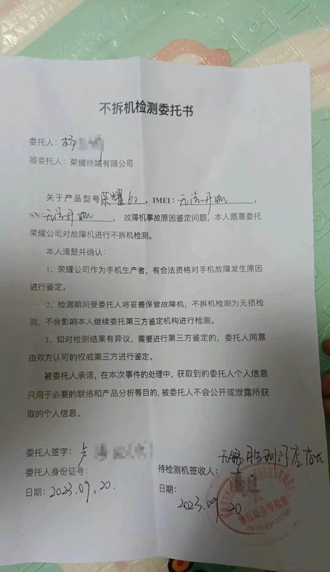 然而,杨女士坚称当时并未发生任何外力磕碰手机的情况,那么是什么导致了手机的自燃呢?在这个问题上,我们不禁要思考一些可能的原因。首先,手机自燃并非个例,近年来,类似事件屡见不鲜。电池的安全性一直是消费者关注的焦点。当电池设计、制造或使用中存在问题时,可能会导致电池过热、漏液、甚至自燃。与此同时,消费者在正常使用手机的过程中也要注意避免过度充电、过度使用等行为,以保证手机的安全性。另一方面,荣耀官方给出的检测报告引发了一些质疑。消费者可能会认为,品牌方为了推卸责任而将问题归咎于外力损伤。然而,我们也不能忽视外力损伤导致电池问题的可能性。例如,手机在充电过程中可能会受到不慎踩踏、碰撞等外力影响,进而导致电池损坏。这种情况下,消费者在使用手机时也要更加小心谨慎。面对这样的情况,消费者是否能够获得公正的处理和赔偿呢?