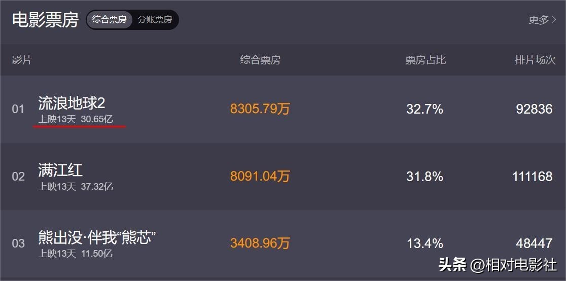 该片当前大破30亿元人民币的票房战绩,虽然距离《流浪地球1》的46.87亿元总票房成绩,还尚有一段路程。但是,此次《流浪地球2》的整体制作水平与科幻故事架构,却是相比于第一部,有了非常明显的巨大进步。