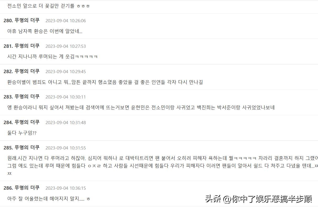 所以在看到白珍熙和尹贤旻分手的消息后,大量网友纷纷留言表示了惊讶和调侃“出轨获得的爱情果然不被祝福”、“还以为两人会结婚,毕竟...”等等,甚至还有一些不知情网友对于朴叙俊、全昭旻、白珍熙、尹贤旻错综复杂的关系进行了八卦,表示大为震惊。