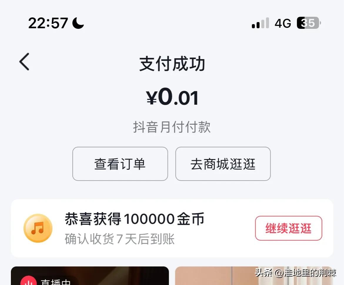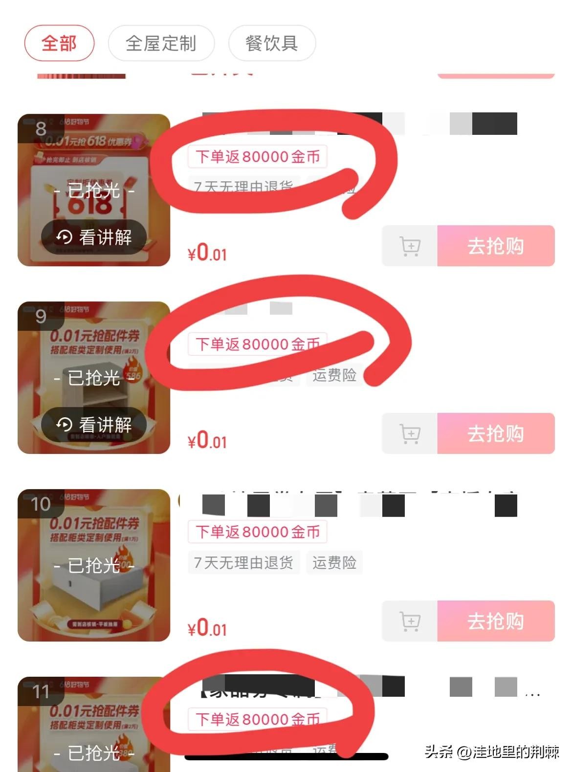 在做任务中很多都是购物广,这其中有下单返金币的任务,值得注意的地方就是这,很多支付0.01或者0.1就可以返80000或者100000金币,