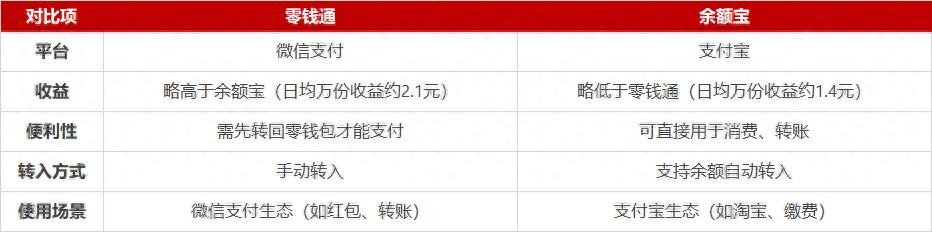 1. 零钱通 vs 余额宝:基础对比