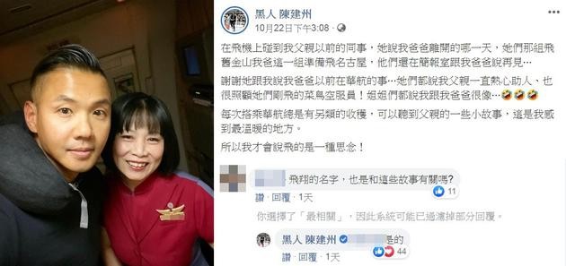 空姐曝陈建州父亲殉职前画面 双胞胎名字和他有关
