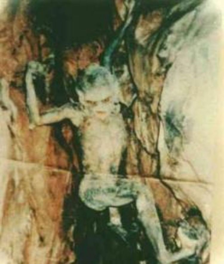 3.这张令人毛骨悚然的照片是在90年代中期,一位参观某个在拉斯海玛(Ras al-Khaimah是阿拉伯联合大公国之一)的洞穴时所拍的。至今,这两个人都发誓他们所看到的不是人,而是外星的可怕生物。