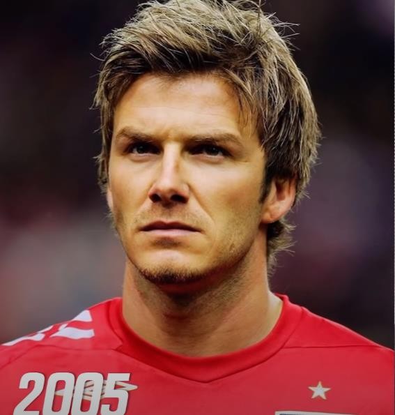 2005年的小贝,这几年小贝头型真是忽长忽短。