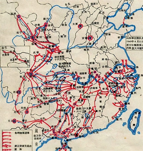 1949年2月,经历了三大战役后,蒋介石的总兵力降至两百万余人。其中,主力部队几乎全部被歼灭。与此相对比,解放军兵力增至三百五十多万人。到了1949年5月的渡江战役后,蒋介石的总兵力降至一百四十多万人。其中,大多数部队已不复存在战斗力。