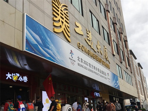 刚过马路右手边是工美大厦,这里有北京2022官方特许商品旗舰店。