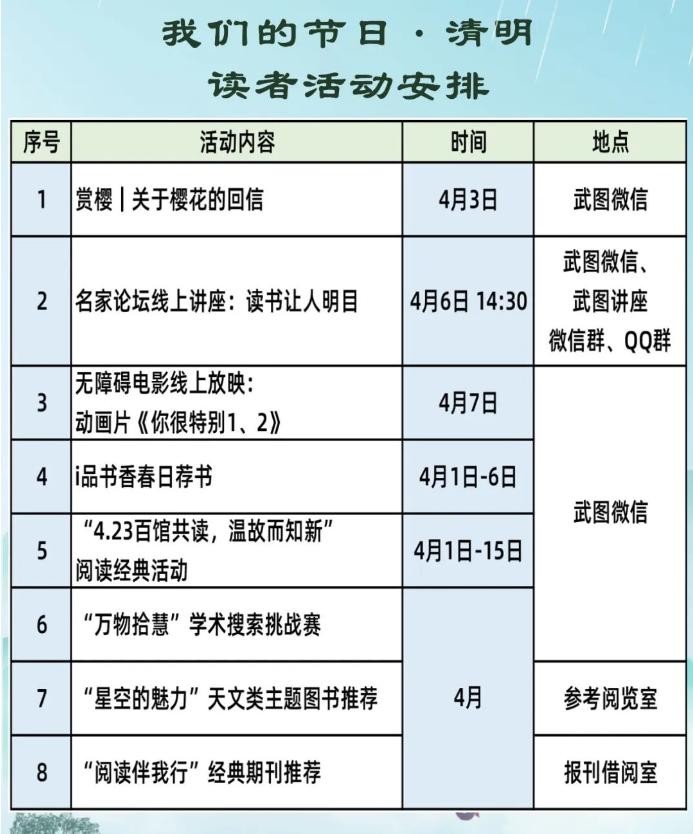 武汉各区图书馆清明开放安排出炉,湖北省图书馆将延长开放时间