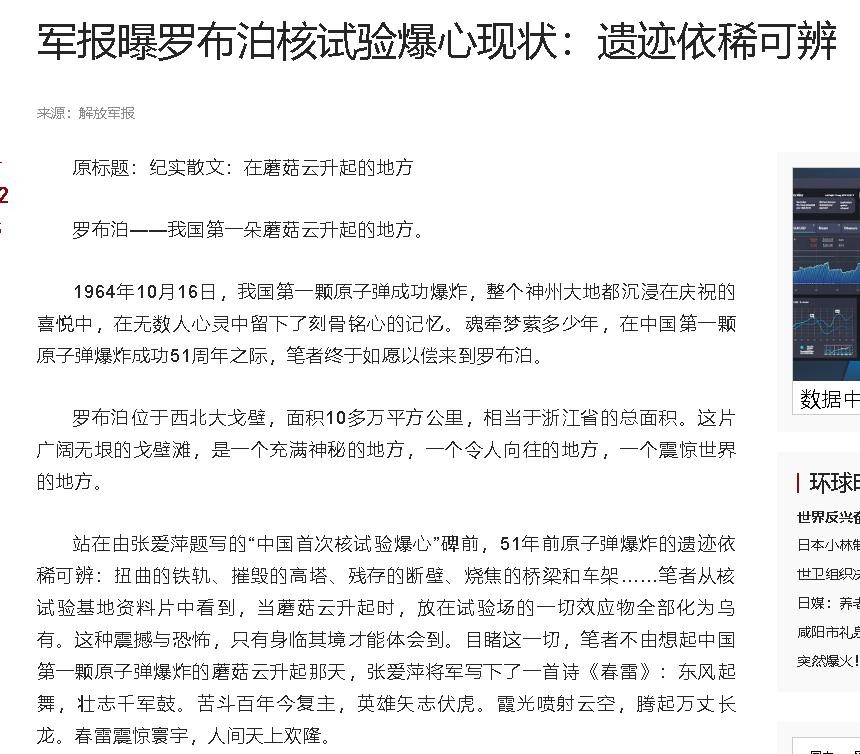 解放军报:军报曝罗布泊核试验爆心现状:遗迹依稀可辨