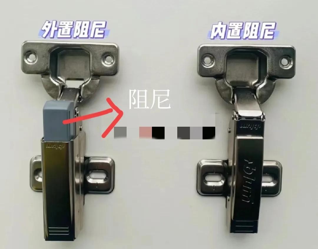 铰链分为带阻尼和不带阻尼,要选带阻尼的!关门静音,更柔和。