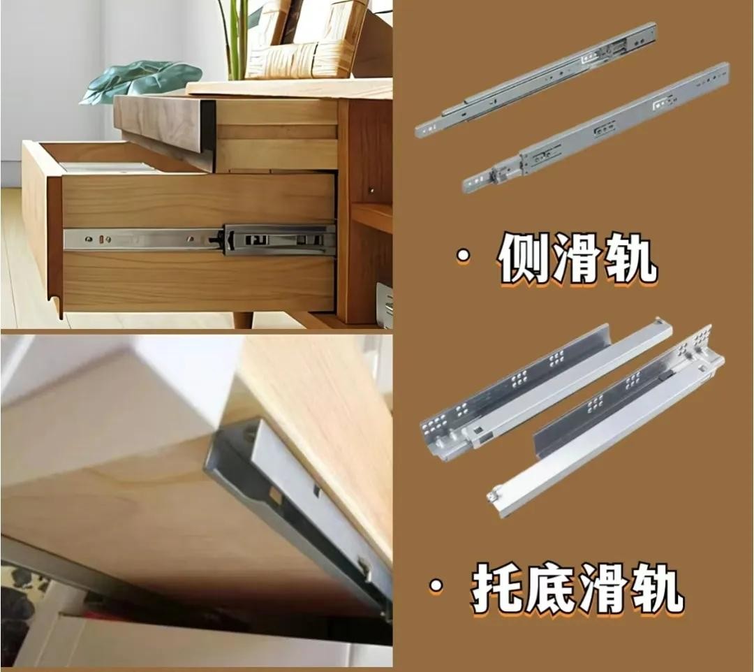 托底轨承重更好但需要一定安装空间,而衣柜抽屉不会放重物,所以侧滑轨更适合。
