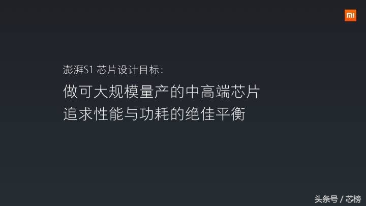 【#小米澎湃S1#,小米松果首款自主研发芯片】作为全球第四家能同时研发设计芯片与手机的企业,我们首次设计的目标是做可大规模量产的中高端芯片。