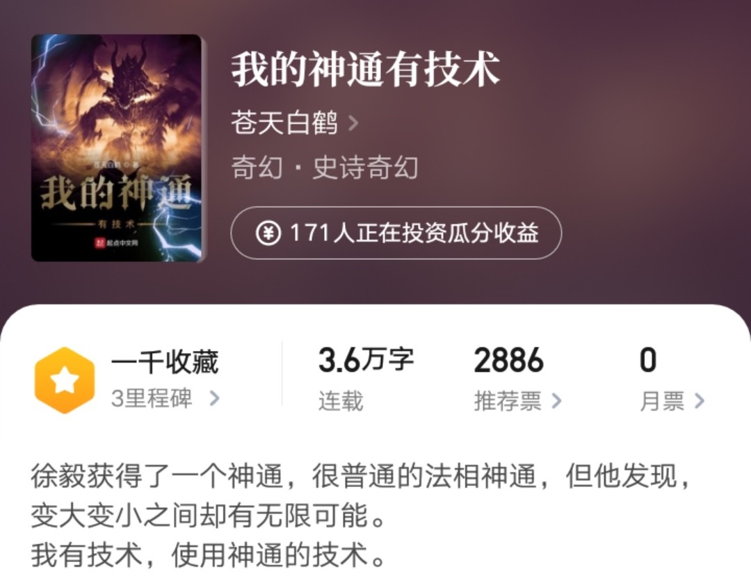 新书讲述一个觉醒了法相神通的穿越客如何在武力超凡的异世界冒险的故事。