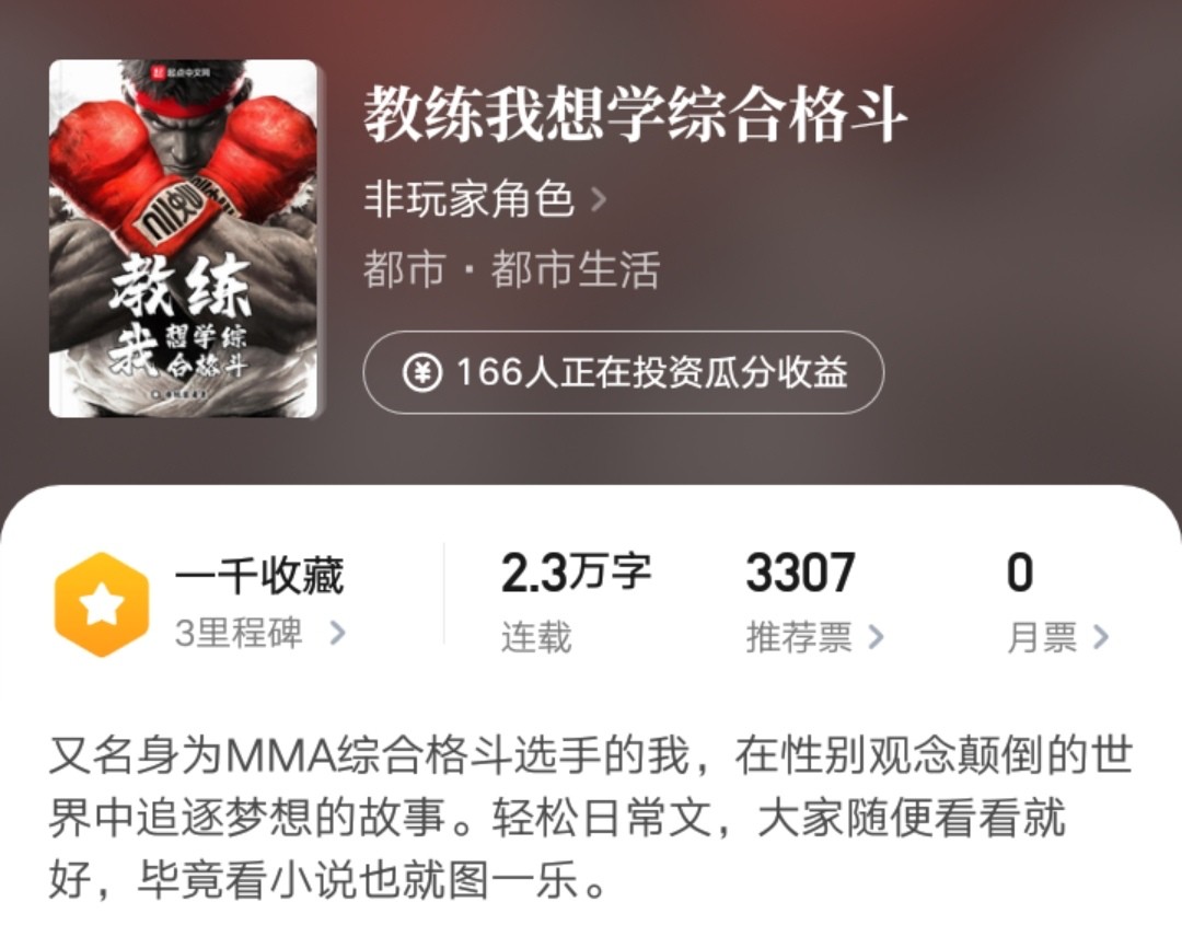 7、《教练我想学综合格斗》,作者:非玩家角色