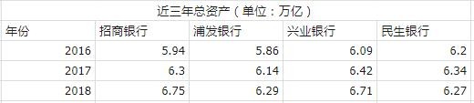 从近3年这几家银行总资产来看,可以说这四家股份制银行的规模是差不多的。不同之处在于,其中招商、浦发、兴业的资产规模呈持续增长趋势,而民生在2018年出现了负增长。