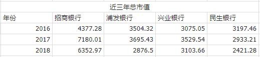 从近3年总市值来看,招商银行毫无疑问要远远领先于其他三家银行,特别是近两年招商银行的总市值超过其他各家的1倍以上。