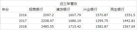 论营收规模,近3年招商银行又是遥遥领先于其他几家银行,每年保持在2000亿规模以上,且保持了近10%的增速,其次是浦发好于兴业,兴业好于民生。