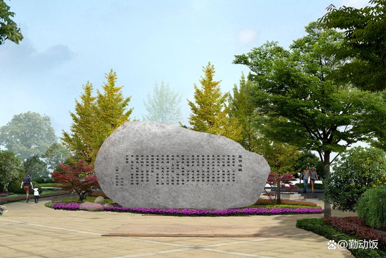 昆明石位于汉武楼船以南,处于公园西部。昆明石整体造型为采用写意浮雕技法的自然景观石,在昆明石的表面镌刻有“昆明池”三个字,仿佛一个巨大的砚台。昆明石的背面还刻有《昆明池赋》,描绘了昆明池的历史沿革和现今风貌。