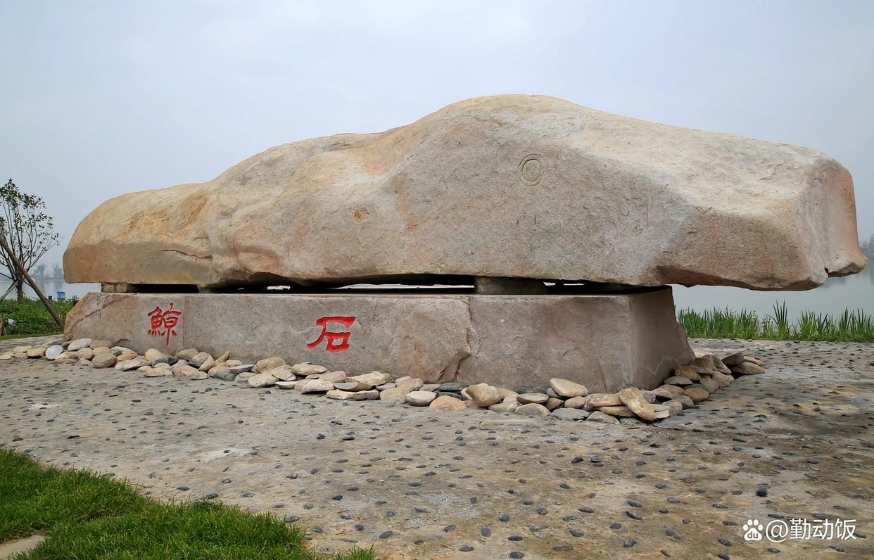 石鲸位于锦鲤报恩以西,处于公园东南部。石鲸以文献记载为依据,经过考证,结合建章宫太液池出土石鲸形制,使用南山花岗岩石雕刻而成。石鲸体长度约8米,高约1.4米,腹部直径1.3米,整体造型古朴,鲸尾呈半弯形状,鳞纹依稀可辨,保留了一定的汉代雕刻艺术特征。