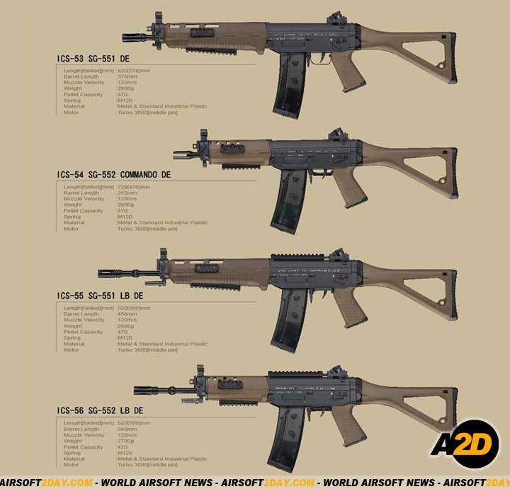 SG 550:标准型。SG 500 SP:民用半自动型。SG 550 Sniper:狙击型。SG 551:短管卡宾枪型。SG 551 SP:民用半自动型,专供出口。SG 551 SWAT:SG 551的警用型。SG 551 LB:长枪管,为发射枪榴弹和装上刺刀设计。SG 552:超短管军用突击型。SG 552 LB:SG 552的长枪管型,为发射枪榴弹和装上刺刀设计。SG 553:超短管军用突击型的改进型,可整合战术导轨。SG 556:SG 552的民用半自动卡宾型,美国造,专供美国民用市场。SG 751 SAPR:由SG 551发展而来的,发射.308/7.62NATO弹的SAPR步枪。(有应美国JDI Firearms要求特别生产的6.5 Creedmoor型号,但是因为进口许可问题,出口美国时换回了.308/7.62NATO枪管)