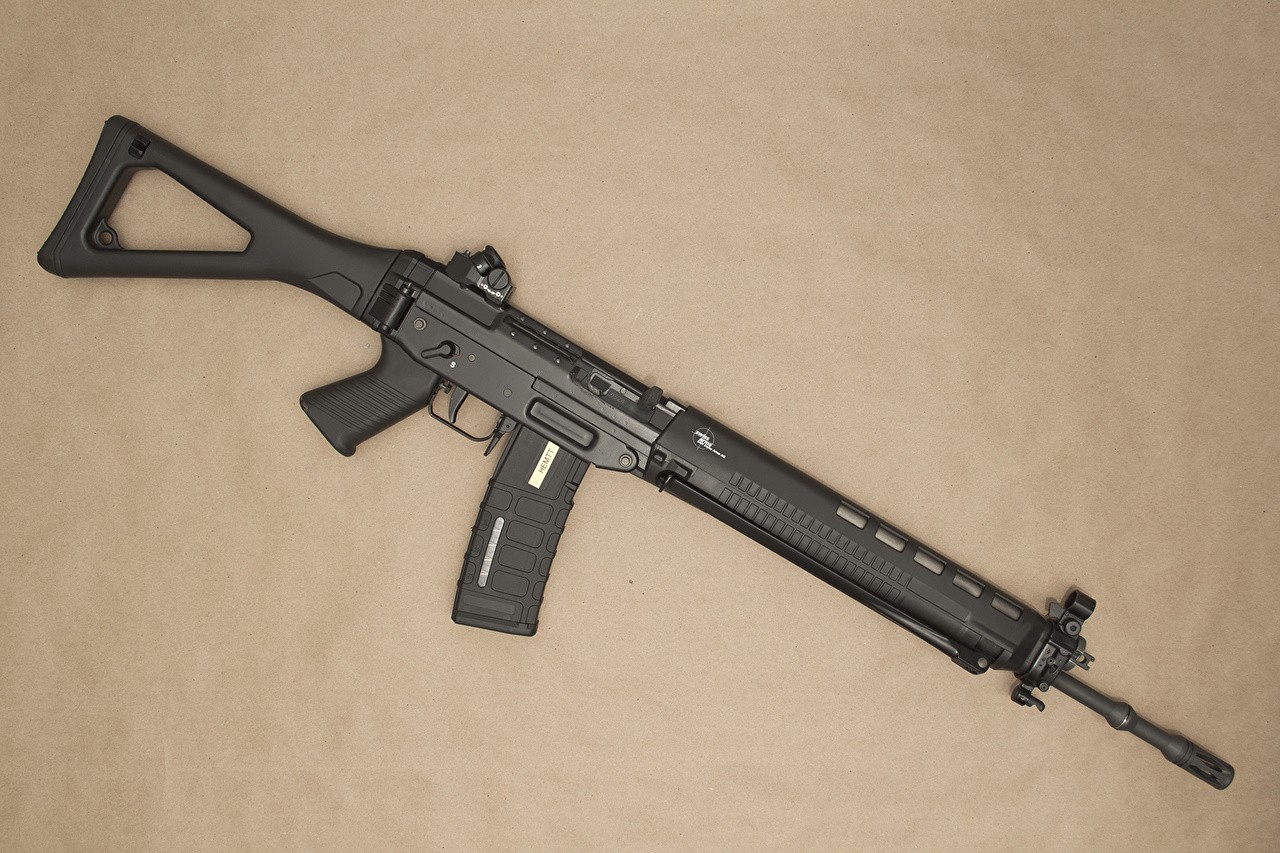 SIG SG 550是由Swiss Arms AG设计及制造的突击步枪。SG 550使用折叠式枪托,附带可折式脚架,枪机设计与AK类似,半透明弹匣。