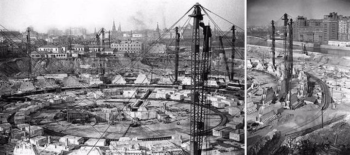 战争胜利后不久,赫鲁晓夫上台,出于对斯大林的批判和意图采用更高效经济的建设方式,1958年,苏维埃宫的建设被彻底终止,并改造成为一个巨大的,直径129.5m的露天游泳池Moskva Pool。但是,曾经同苏维埃宫一同计划建造的地铁站被成功完成。