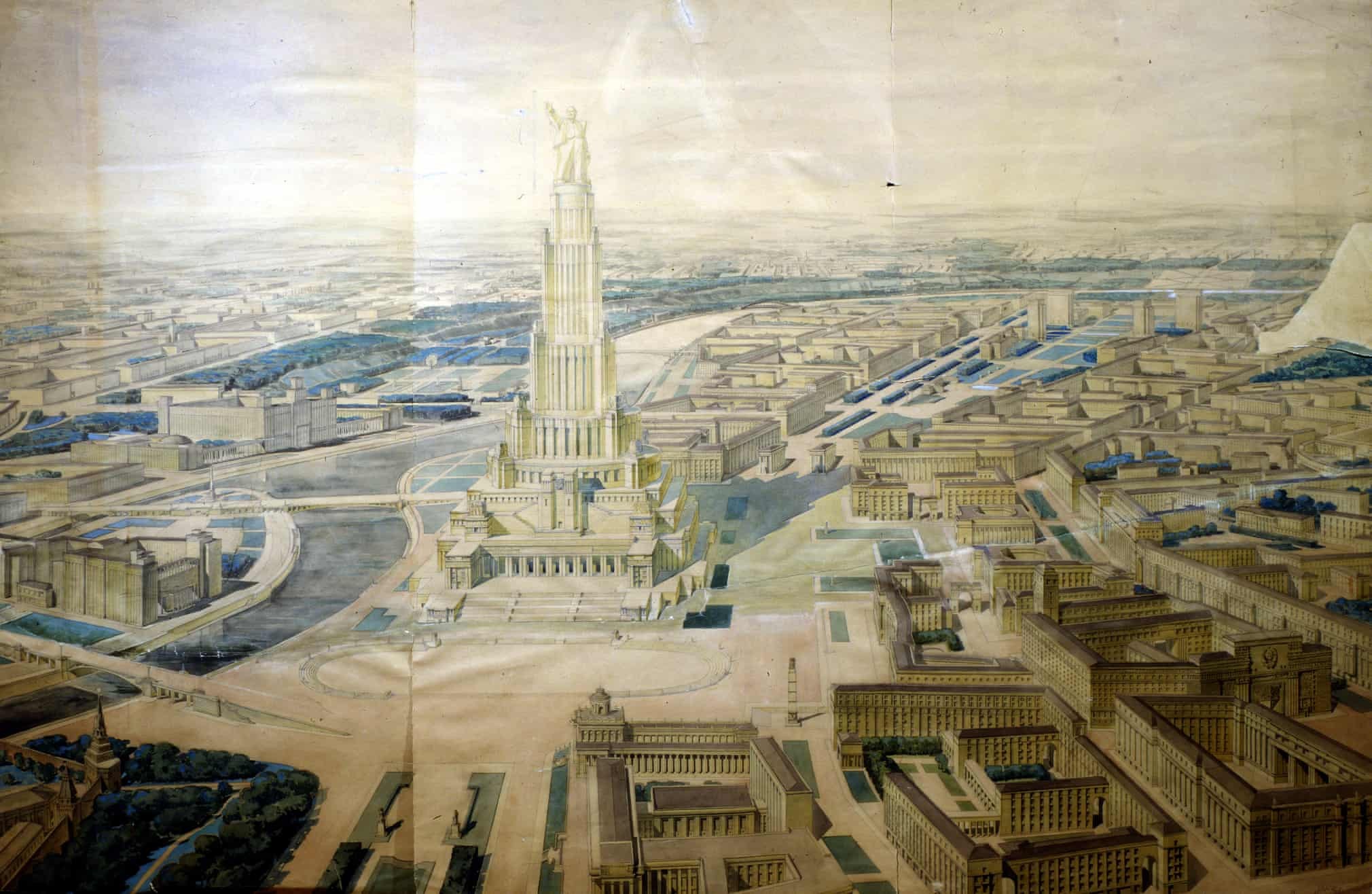 什么象征着即将到来的共产主义和社会主义时代呢?苏联的圣殿应该是什么样的?为了回答这个棘手的问题,1931年,苏联政府对国际各设计所展开了招标。总共收集了272个概念,包括160幅建筑作品(136幅苏联作品,其中24幅外国作品)。比赛吸引了众多知名国际建筑师,例如为今天建筑师们所熟知的勒·柯布西耶(Le Corbusier),约瑟夫·厄本(Joseph Urban),沃尔特·格罗皮乌斯(Walter Gropius)等等。