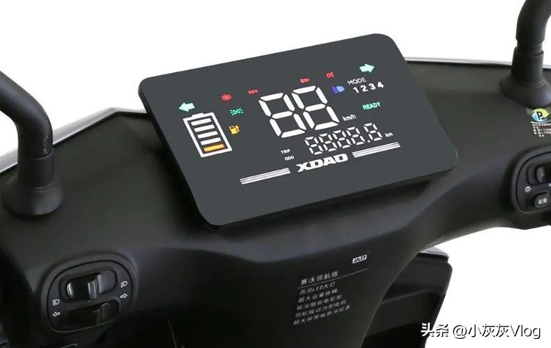 在智能化方面上,我觉得他也不比小牛和9号差多少。他搭载的是LED矩阵仪表,外表方正阳刚,全新的界面设计,很显科技感。在科技方面呢,这个是有很多地方的,比如呀,我们车上还配有定速巡航,长途的骑行可以让你骑得更舒适。还配置了有一键倒车。智能USB,带有ACS。有的人可能还疑惑acs是什么,这个我就不给大家普及了。