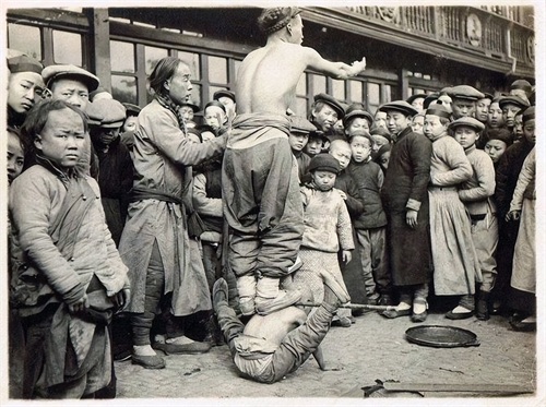 那时人们饿的骨瘦如柴,还需要出来卖艺赚钱,个个无精打采,穿着粗布制作的衣服。