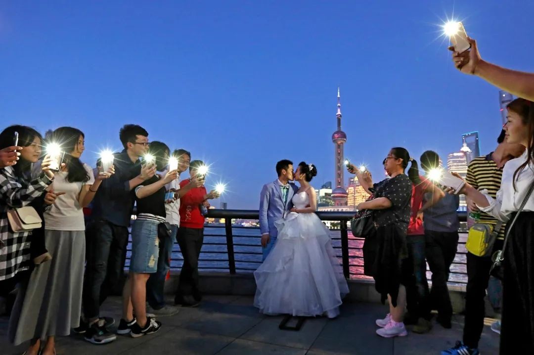 2015年,在上海外滩广场举行的一场婚庆活动。在黄浦江对面,就是东方明珠、浦东新区。邵海木 摄