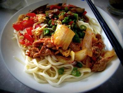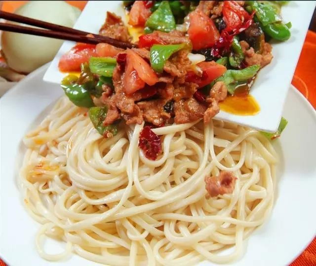 拌面实质是陕甘宁地区的拉面技术和新疆肉食习惯相融合的一个美食方法。