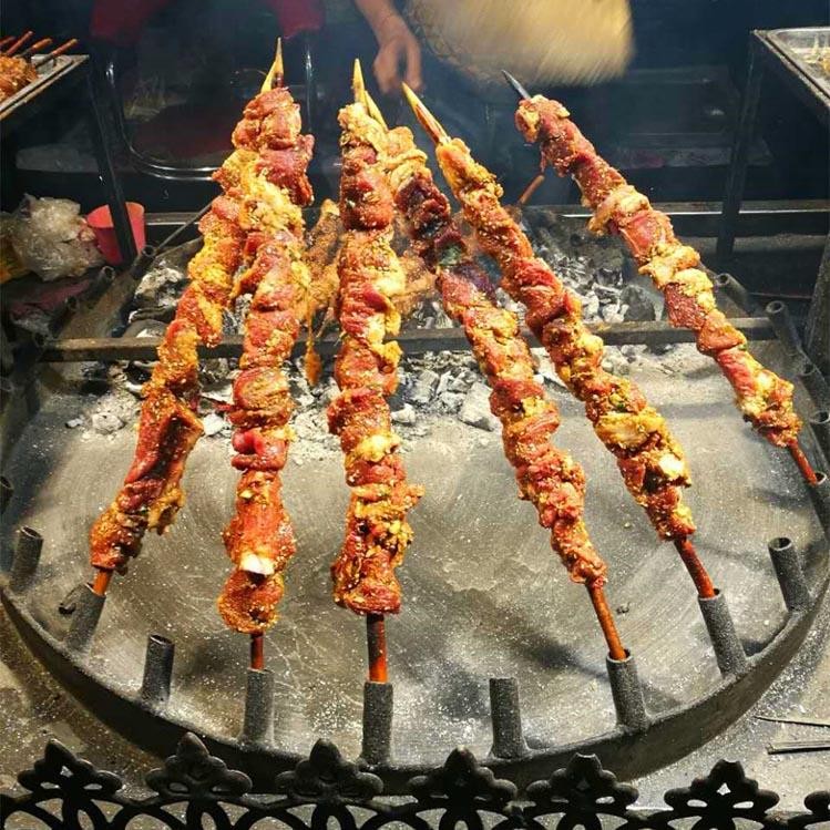 跟一般的肉串不同,红柳烧烤最特别的就是它的木串,新疆人会用红柳枝来替代普通的木串。