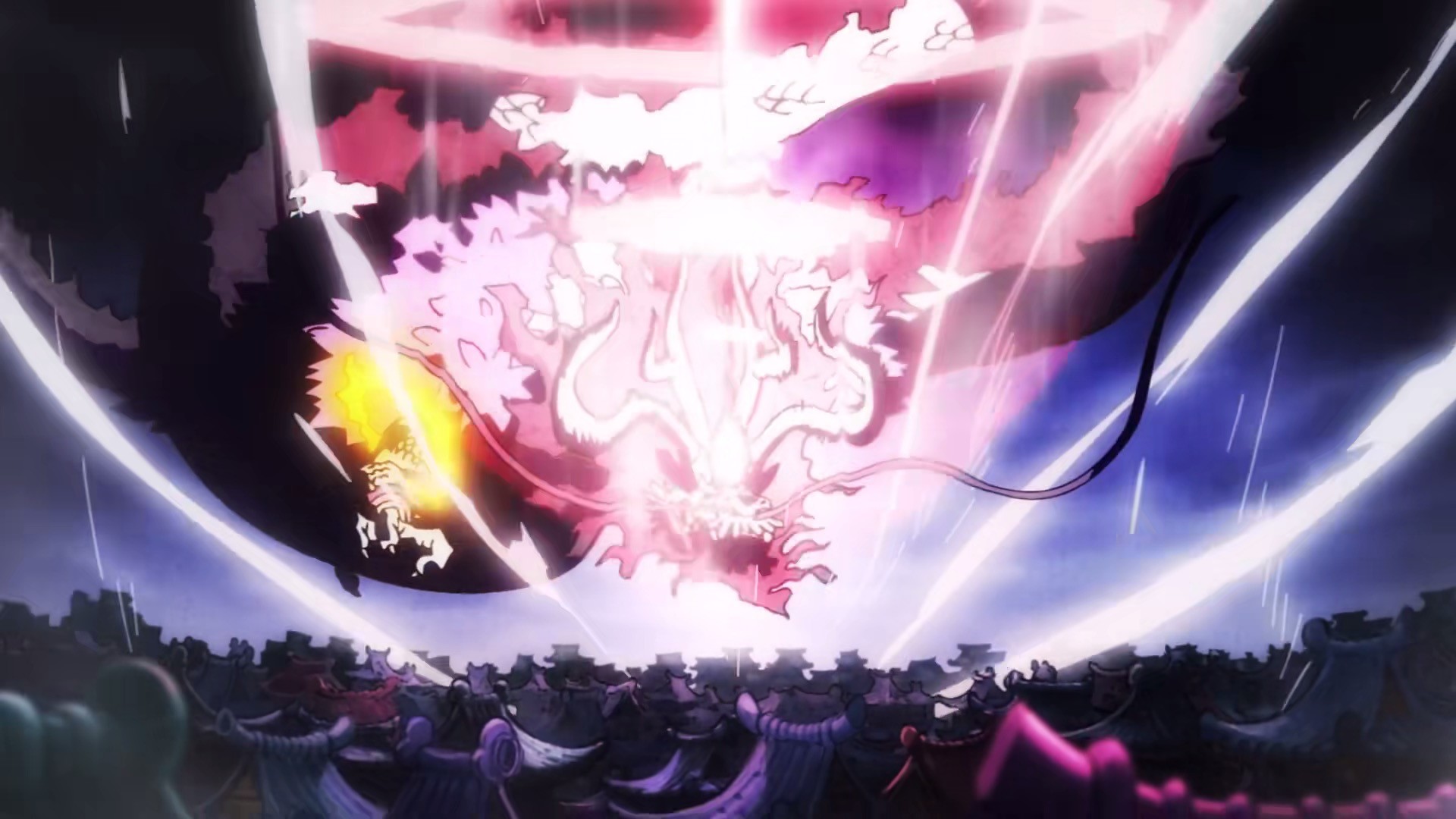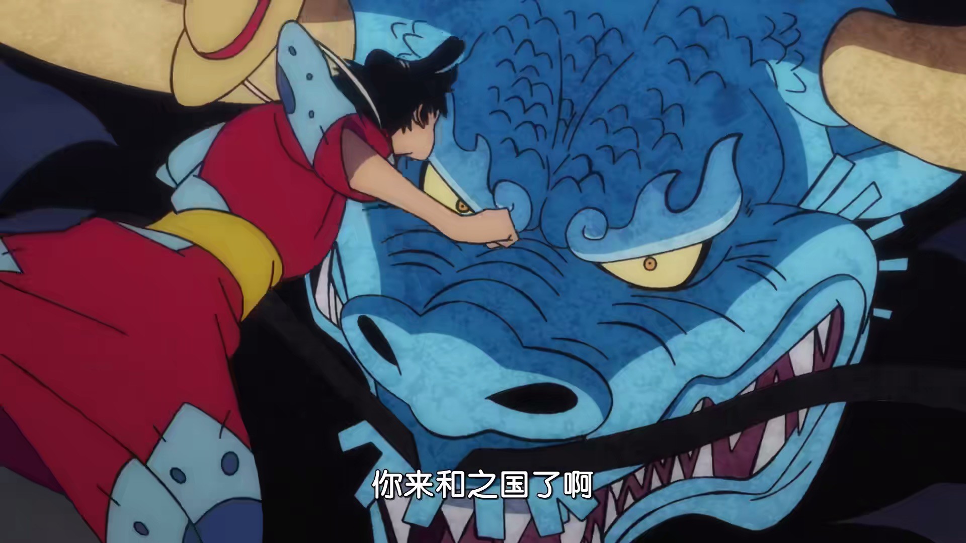 遇见斯皮德只是小插曲,这一次是路飞与凯多正式交手,路飞不再掩饰自己的身份。还是熟悉的那句话,“我是要成为海贼王的男人”。在这里路飞在本集中爆发的第三次霸王色,威慑力远强于前面两次,凯多迎战也用上霸王色。只有王者资质的人才拥有这种霸气,两种霸王色碰撞,感觉空气都要被撕裂。