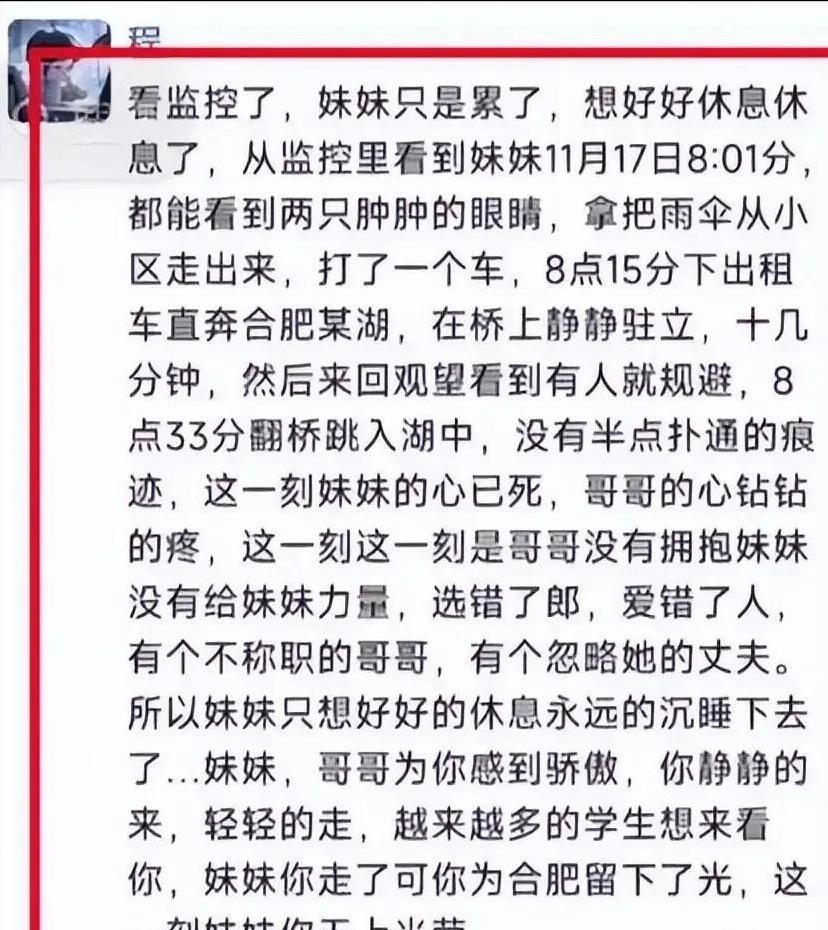 悲剧啊!合肥女教师因家庭矛盾跳湖自杀:出事前三天曾向哥哥求助