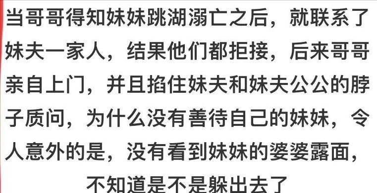 事情的转折发生在程千荣跳湖的前三天。因买房问题,她与婆家爆发了激烈的争执。婆家要求她掏出所有积蓄支付首付,但却拒绝在房产证上加她的名字。这样的不公平让程千荣崩溃,她情绪激动地向哥哥求助。